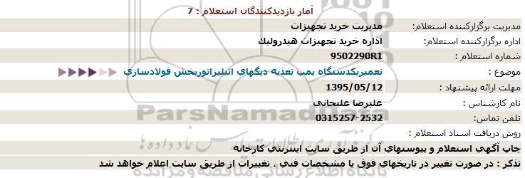 اداره برگزارکننده استعلام: اداره خرید تجهیزات هیدرولیک