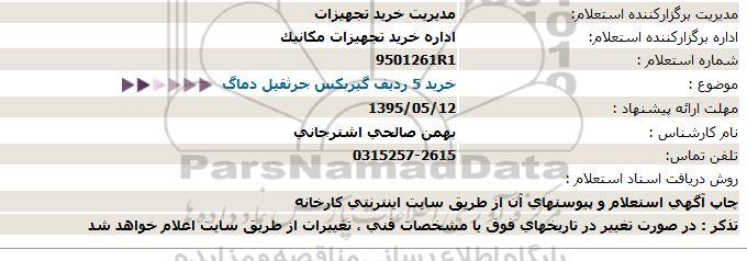 اداره برگزارکننده استعلام: اداره خرید تجهیزات مکانیک