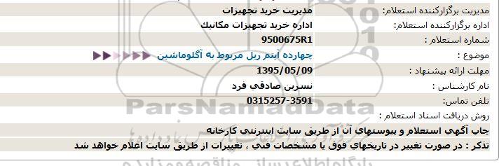 اداره برگزارکننده استعلام: اداره خرید تجهیزات مکانیک