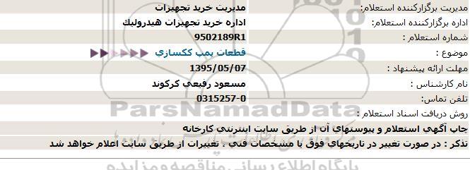 استعلام قطعات پمپ ککسازی , استعلام , استعلام قطعات پمپ ککسازی
