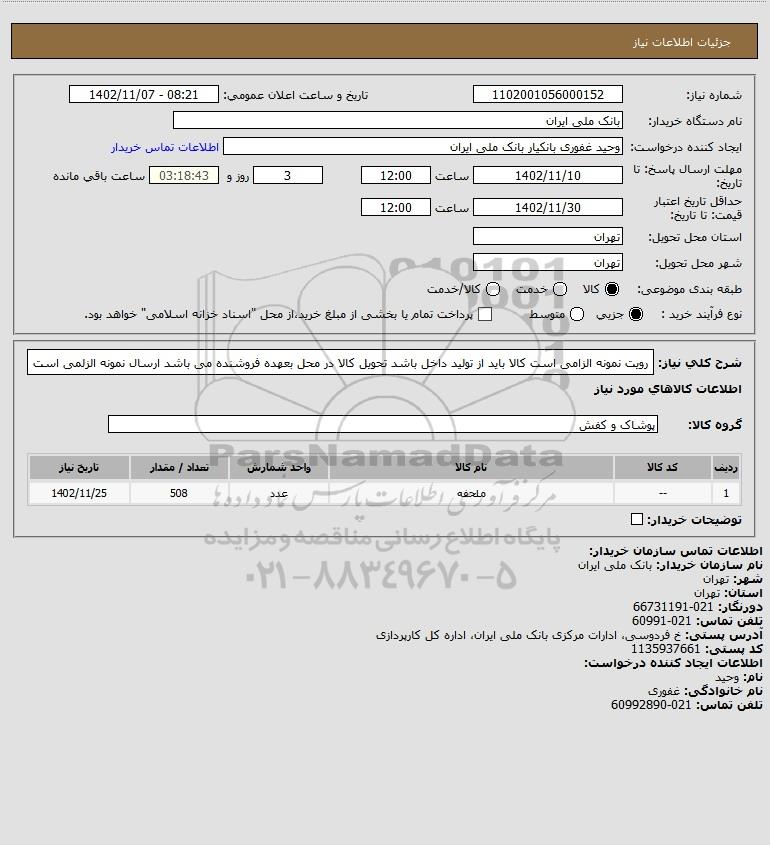 نام دستگاه خریدار:بانک ملی ایران
