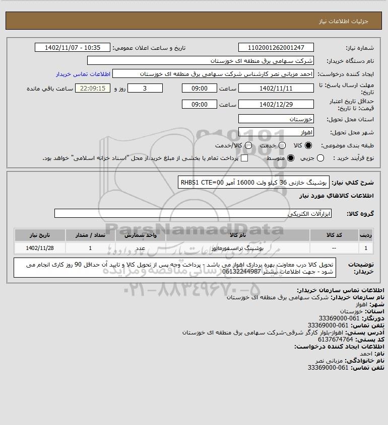 نام دستگاه خریدار:شرکت سهامی برق منطقه ای خوزستان