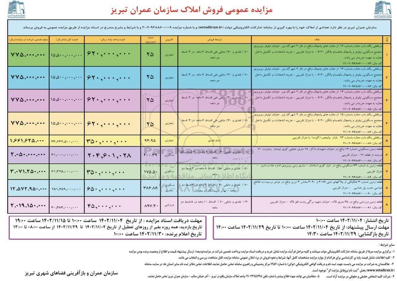 مزایده عمومی فروش املاک سازمان عمران تبریز ؟