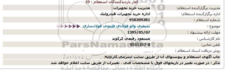 استعلام سیفتی والو فولادی فلنچی فولادسازی, استعلام سیفتی والو فولادی فلنچی فولادسازی