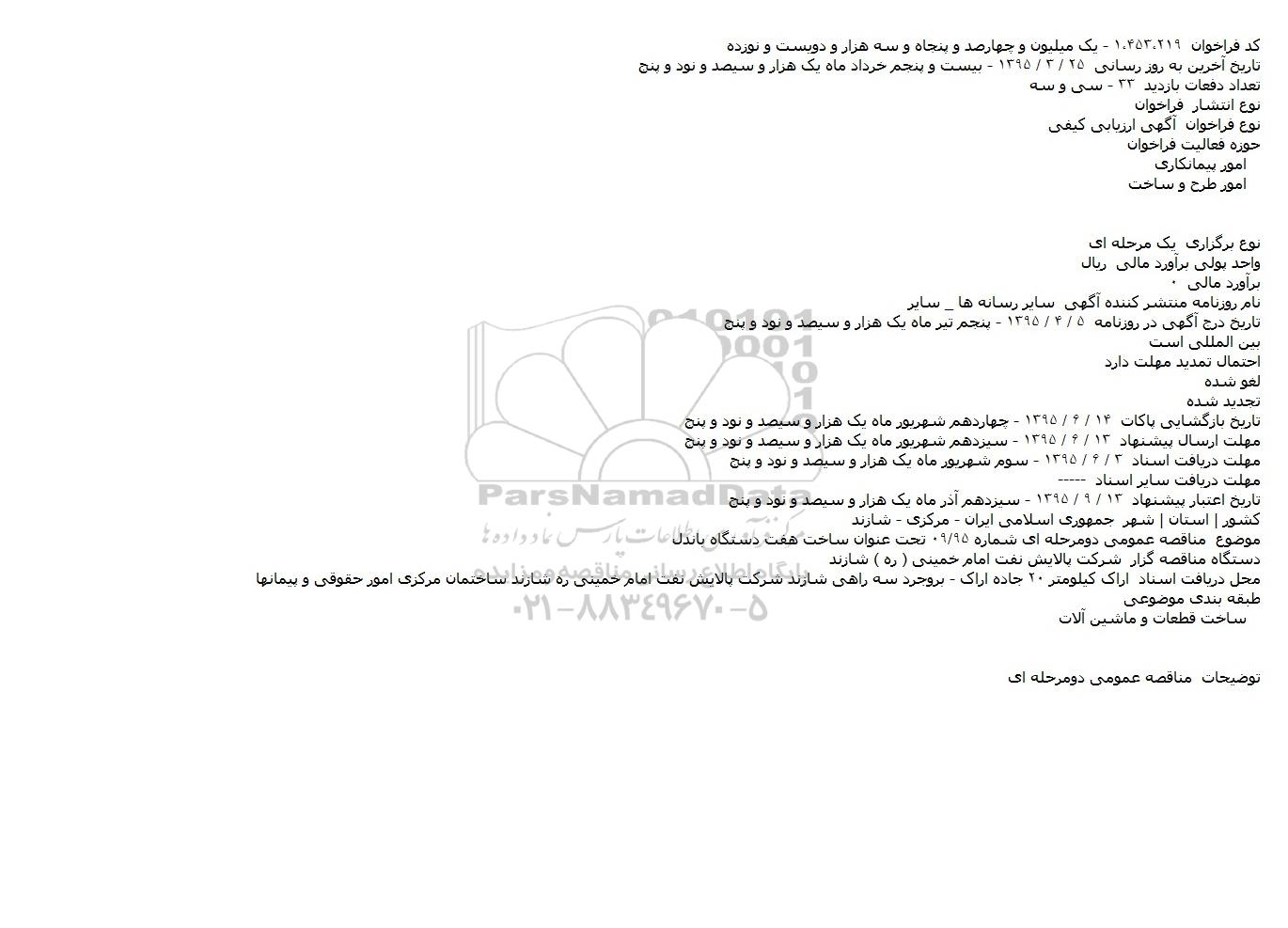 محل دریافت اسناد اراک کیلومتر ۲۰ جاده اراک - بروجرد سه راهی شازند شرکت پالایش نفت امام خمینی ره شازند ساختمان مرکزی امور حقوقی و پیمانها