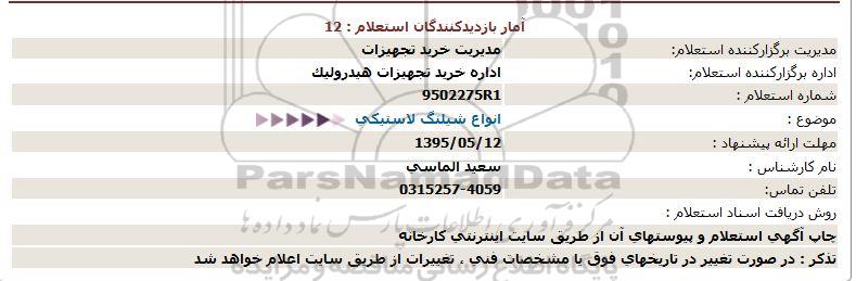 اداره برگزارکننده استعلام: اداره خرید تجهیزات هیدرولیک