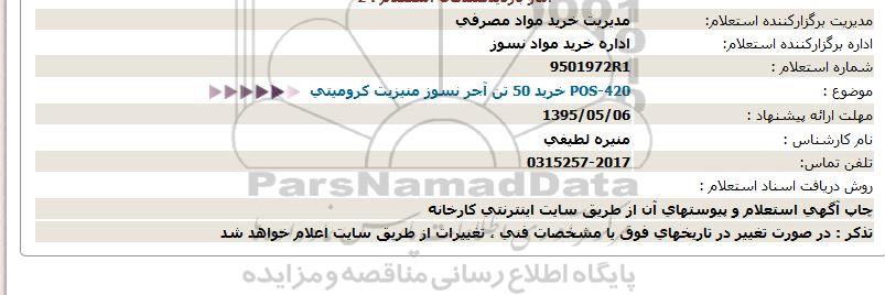 اداره برگزارکننده استعلام: اداره خرید مواد نسوز