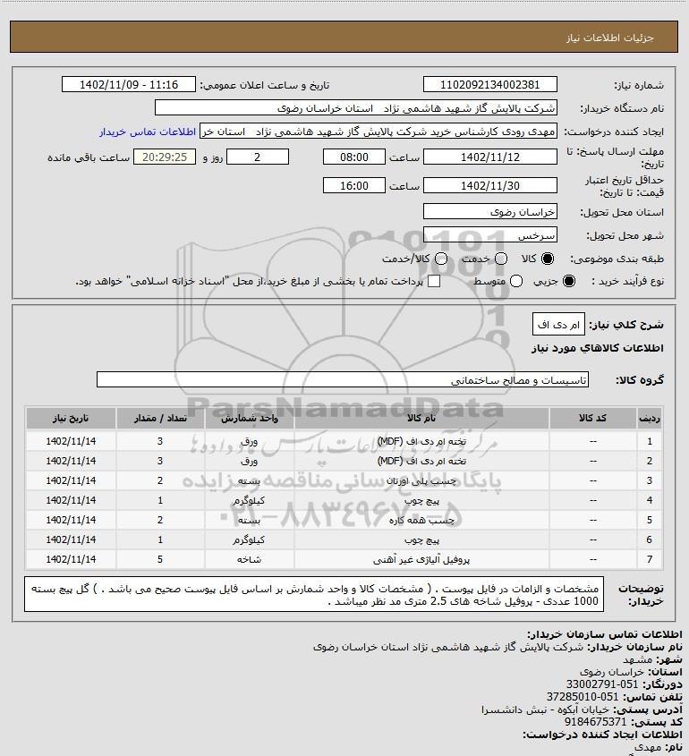 شرح کلی نیاز: ام دی اف