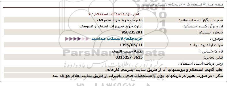 اداره برگزارکننده استعلام: اداره خرید تجهیزات ایمنی و عمومی