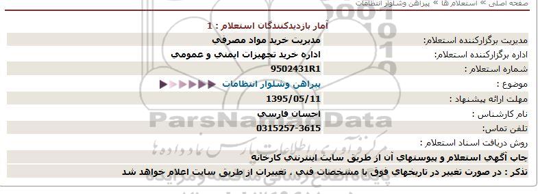اداره برگزارکننده استعلام: اداره خرید تجهیزات ایمنی و عمومی