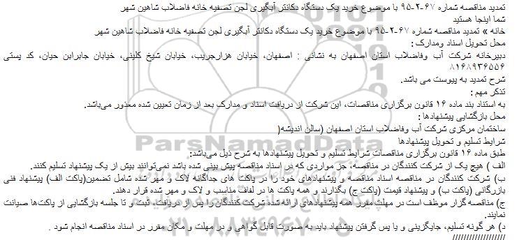 تمدید مناقصه خرید یک دستگاه دکانتر آبگیری لجن تصفیه خانه فاضلاب شاهین شهر از کلیه افراد متخصص و شرکتها واجد شرایط دعوت به عمل میآید در مناقصه با کد خبرگزاری پارس نماد: 699718 شرکت نمایند.