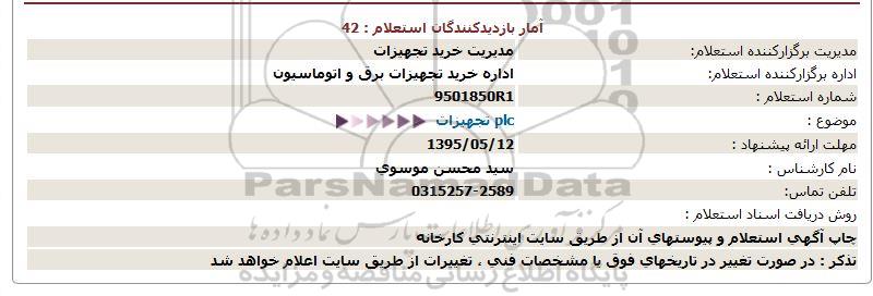 استعلام PLC تجهیزات , استعلام , استعلام PLC تجهیزات