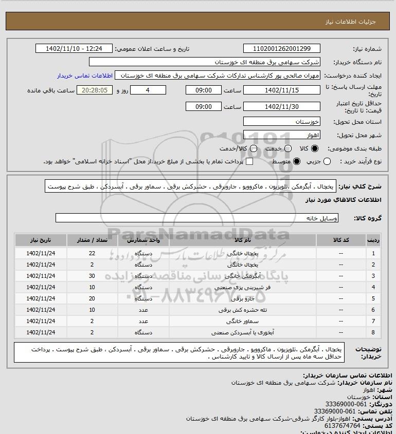 | 3 | -- | آبگرمکن خانگی | دستگاه | 30 | 1402/11/24 |