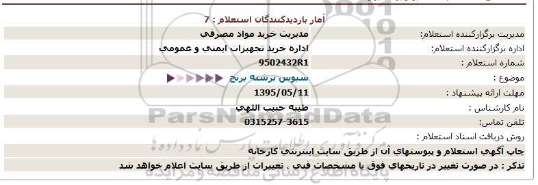 اداره برگزارکننده استعلام: اداره خرید تجهیزات ایمنی و عمومی