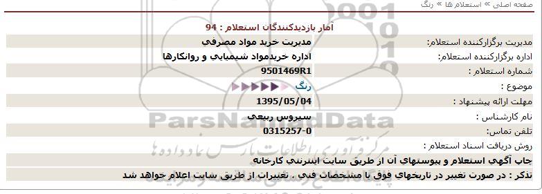 اداره برگزارکننده استعلام: اداره خریدمواد شیمیایی و روانکارها