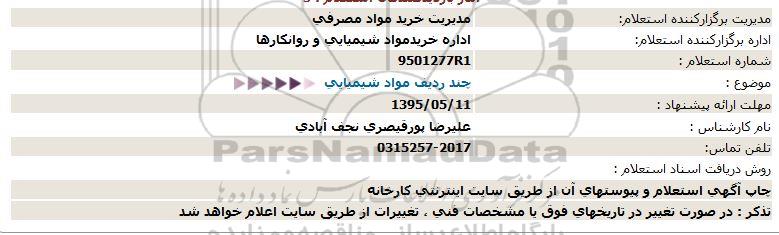 اداره برگزارکننده استعلام: اداره خریدمواد شیمیایی و روانكارها