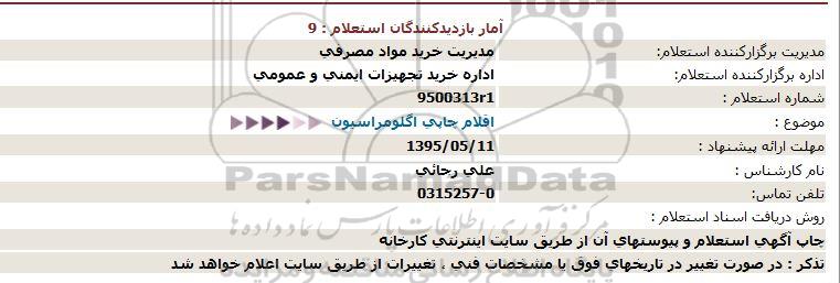 اداره برگزارکننده استعلام: اداره خرید تجهیزات ایمنی و عمومی