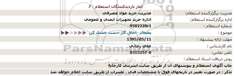 اداره برگزارکننده استعلام: اداره خرید تجهیزات ایمنی عمومی و مصرفی