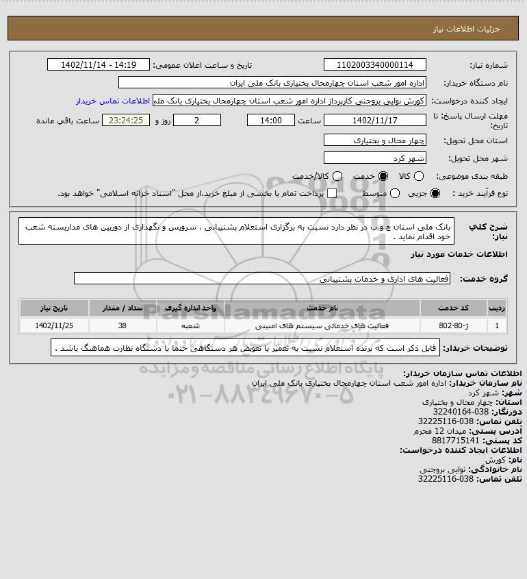 نام دستگاه خریدار:اداره امور شعب استان چهارمحال بختیاری بانک ملی ایران