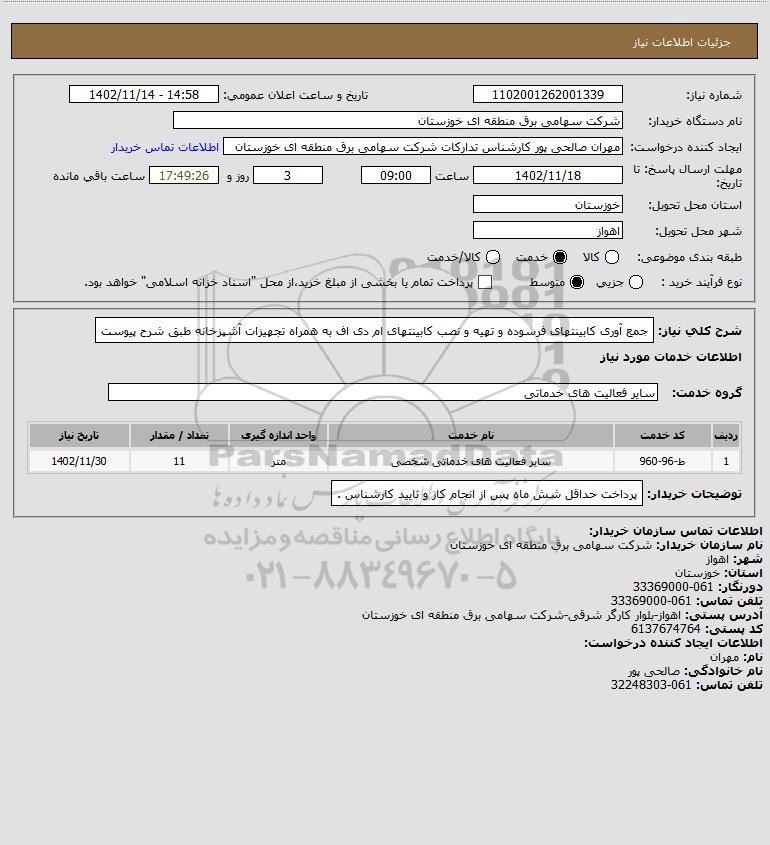 نام دستگاه خریدار:شرکت سهامی برق منطقه ای خوزستان