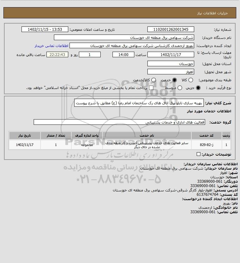 نام دستگاه خریدار:شرکت سهامی برق منطقه ای خوزستان