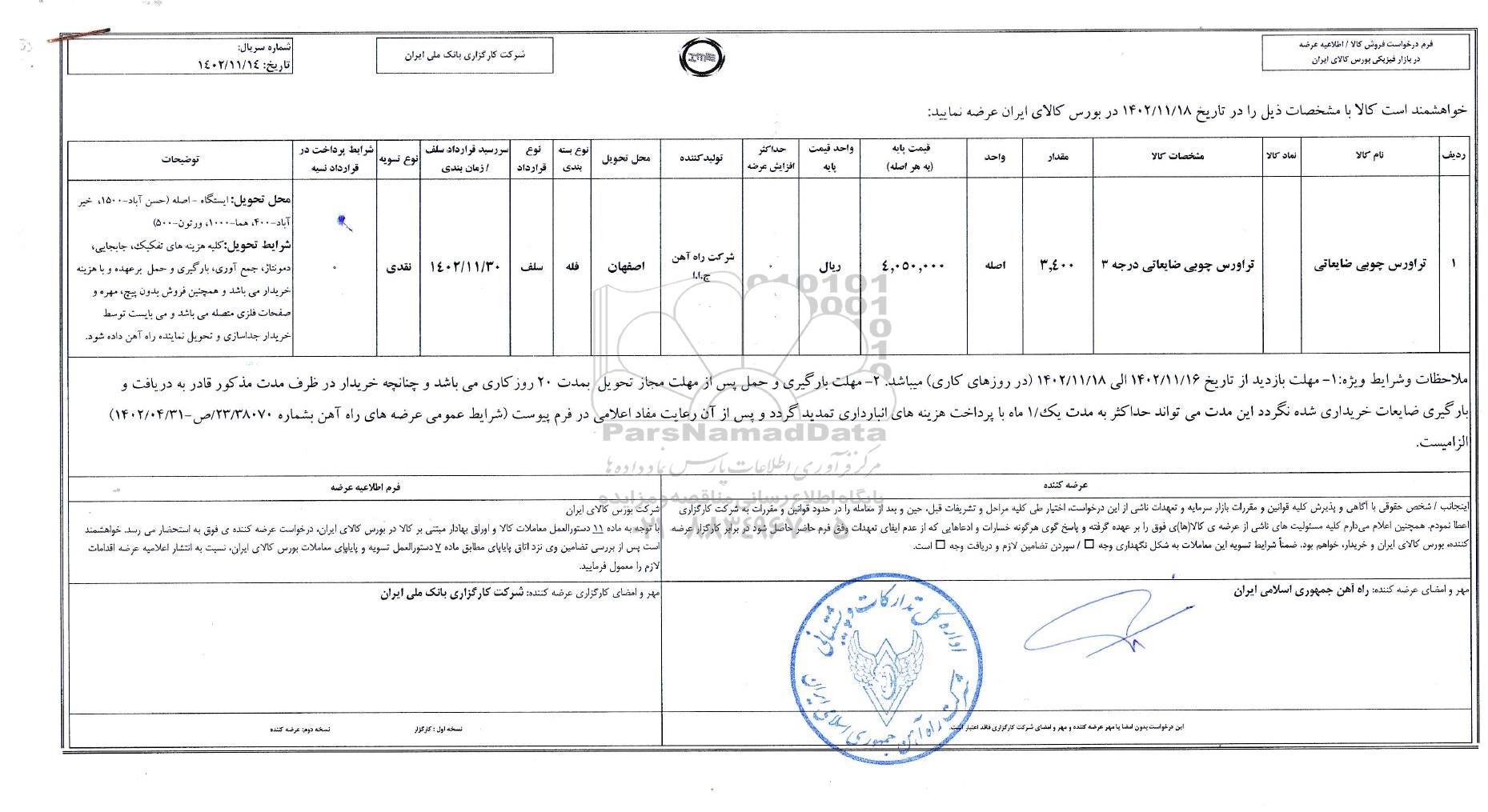 استعلام تراورس چوبی ضایعاتی, استعلام تراورس چوبی ضایعاتی