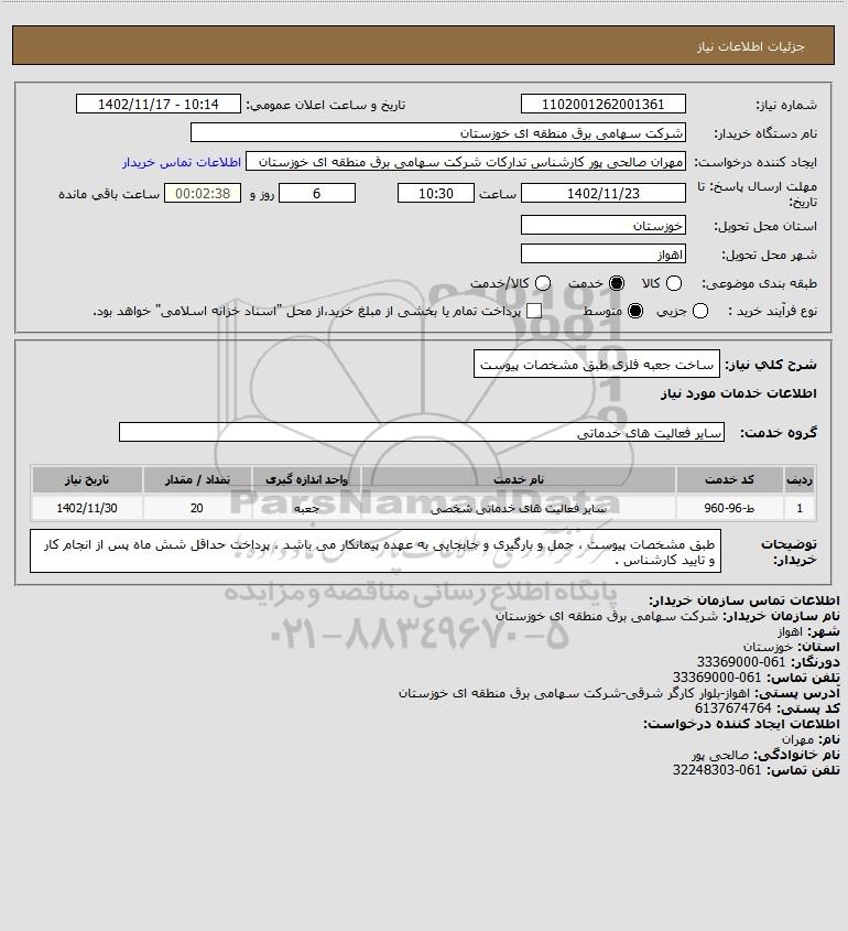 استعلام ساخت جعبه فلزی طبق مشخصات پیوست, استعلام ساخت جعبه فلزی طبق مشخصات پیوست