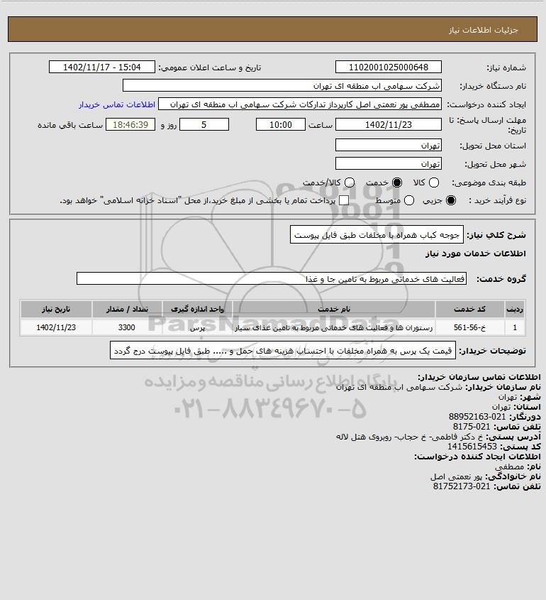 استعلام جوجه کباب همراه با مخلفات طبق فایل پیوست, استعلام جوجه کباب همراه با مخلفات طبق فایل پیوست