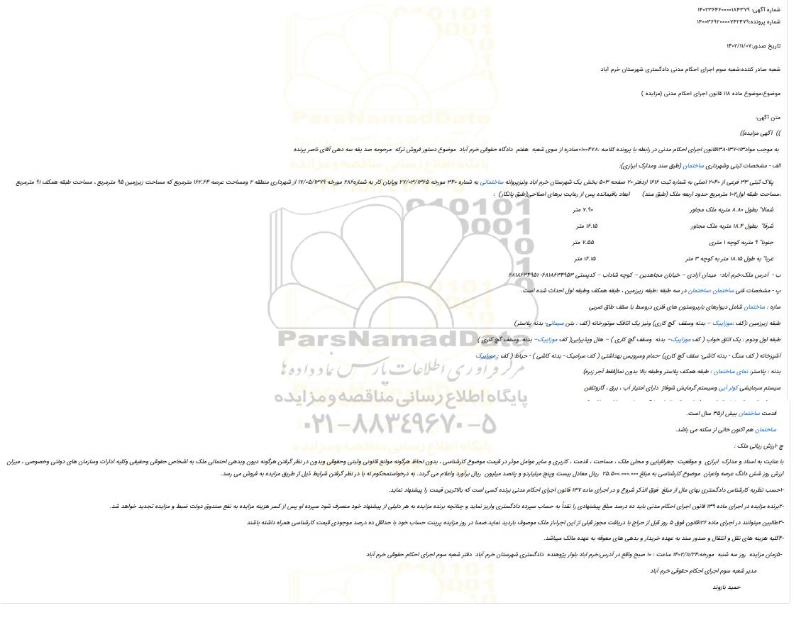 شعبه صادر کننده:شعبه سوم اجرای احکام مدنی دادگستری شهرستان خرم آباد