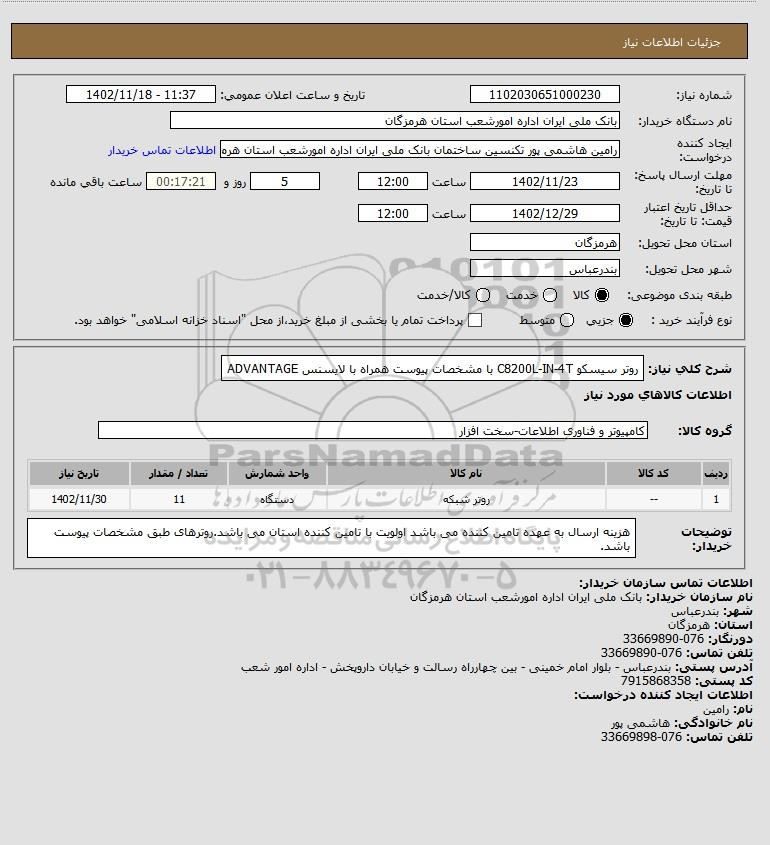 نام دستگاه خریدار:بانک ملی ایران اداره امورشعب استان هرمزگان