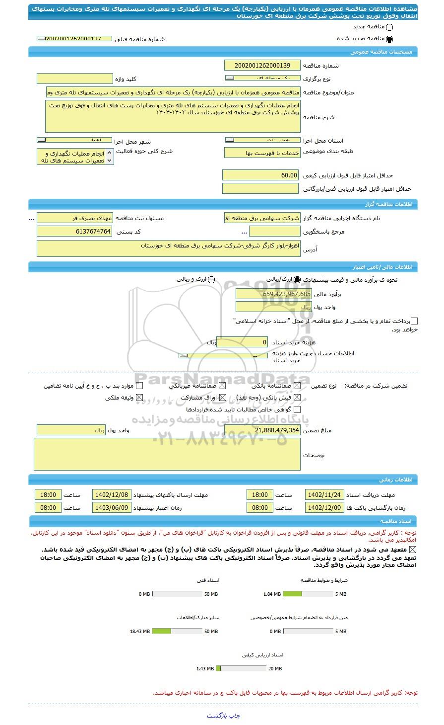 | مبلغ تضمین | 21,888,479,354 | واحد پول | ریال |