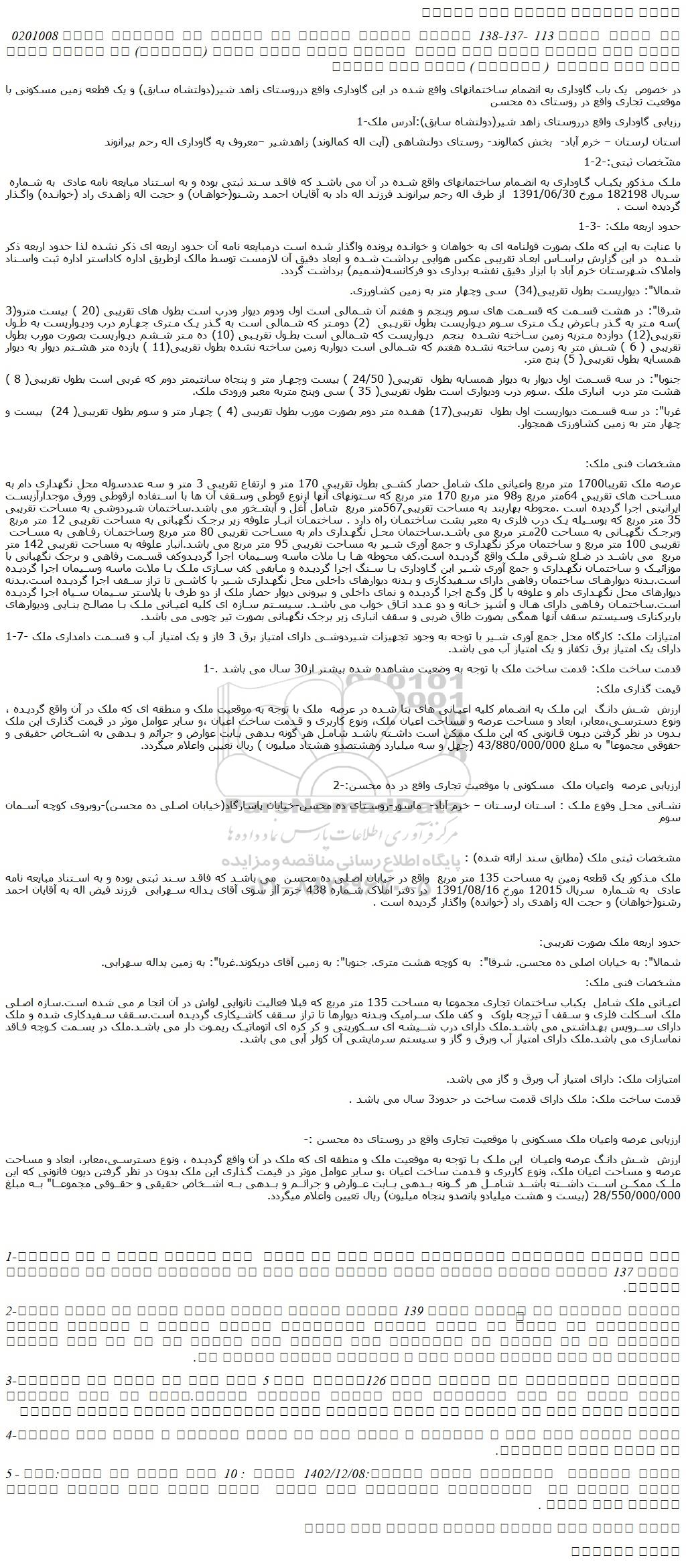 -ارزیابی عرصه واعیان ملک مسکونی با موقعیت تجاری واقع در روستای ده محسن :