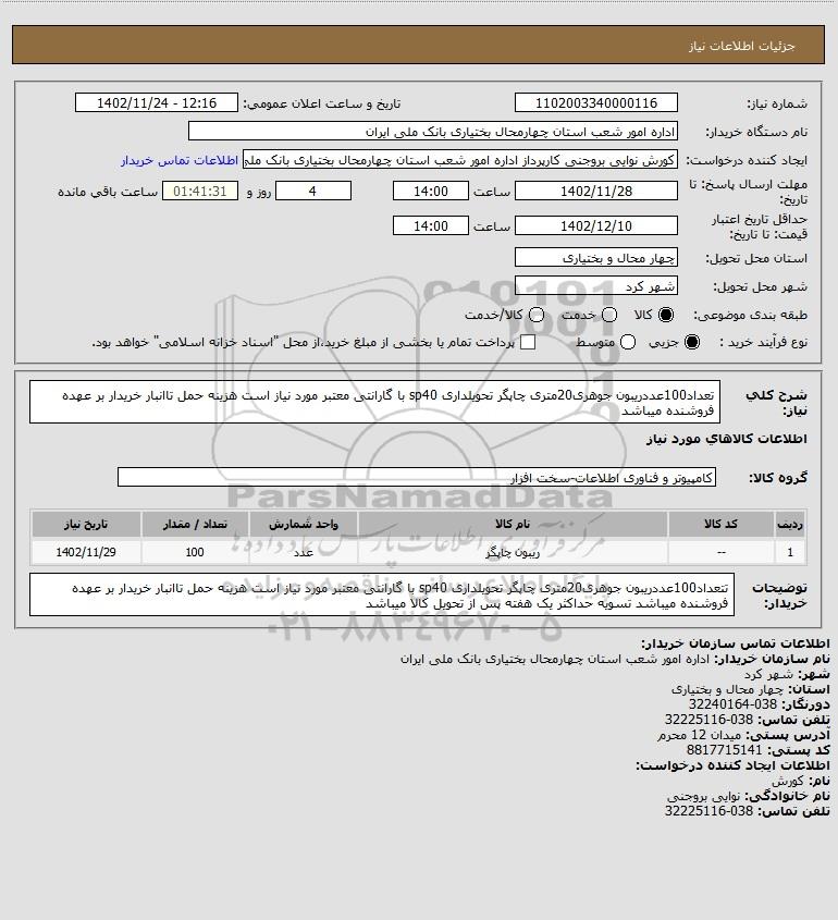 نام سازمان خریدار: اداره امور شعب استان چهارمحال بختیاری بانک ملی ایران