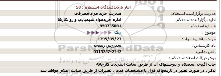 اداره برگزارکننده استعلام: اداره خریدمواد شیمیایی و روانکارها