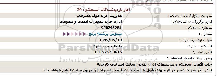 اداره برگزارکننده استعلام:  اداره خرید تجهیزات ایمنی و عمومی