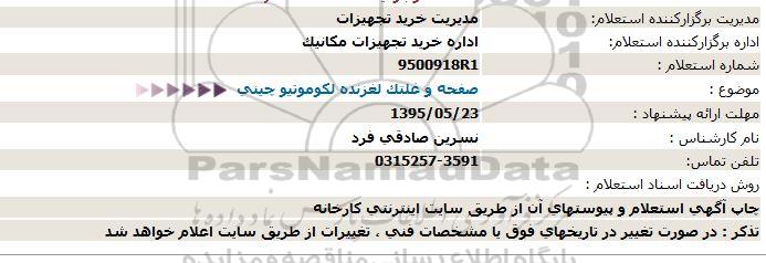 اداره برگزارکننده استعلام: اداره خرید تجهیزات مکانیک