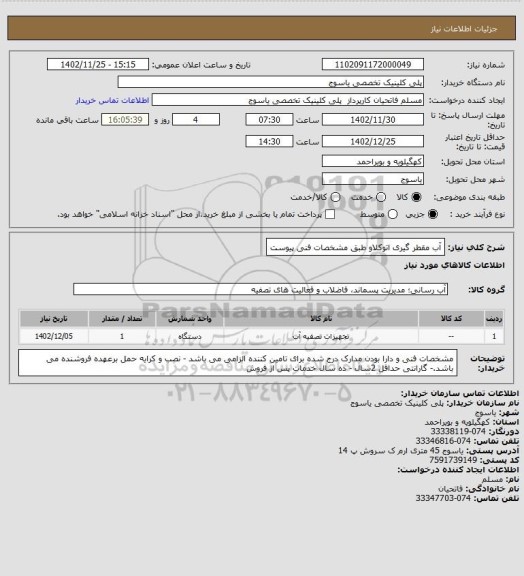 نام دستگاه خریدار:پلی کلینیک تخصصی یاسوج
