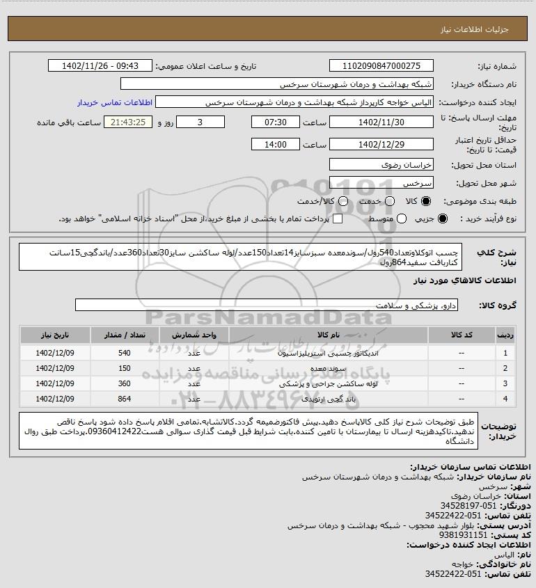 نام دستگاه خریدار:شبکه بهداشت و درمان شهرستان سرخس