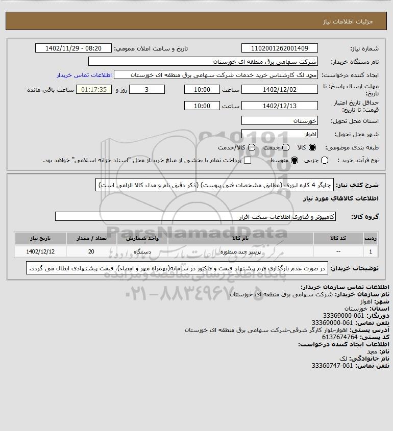 نام دستگاه خریدار:شرکت سهامی برق منطقه ای خوزستان