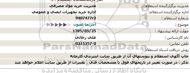 اداره برگزارکننده استعلام:     اداره خرید تجهیزات ایمنی و عمومی