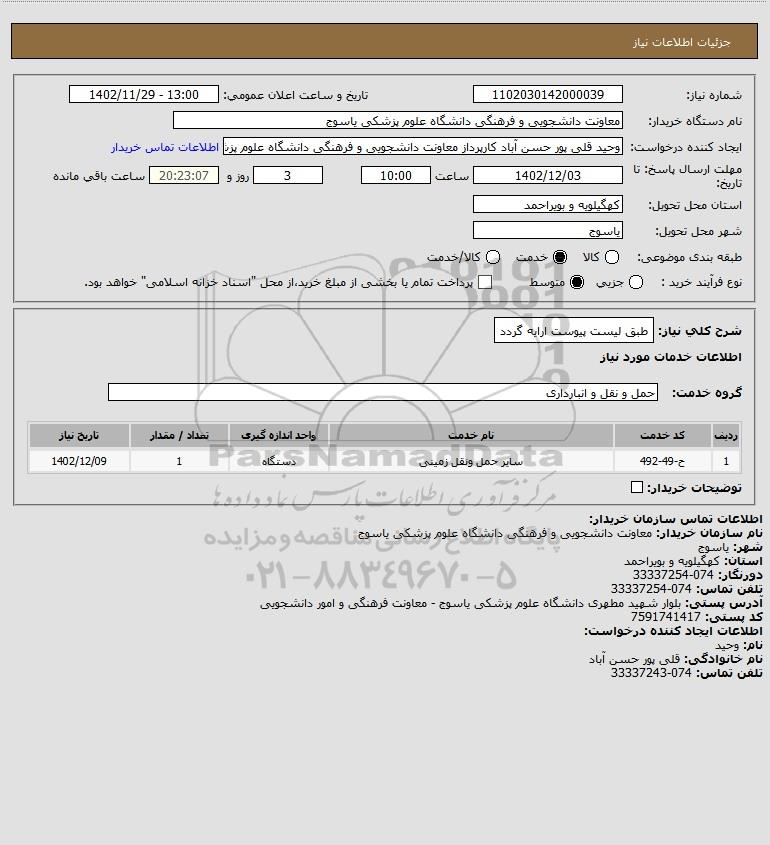 نام دستگاه خریدار:معاونت دانشجویی و فرهنگی دانشگاه علوم پزشکی یاسوج