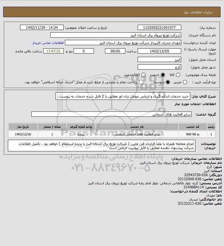 شرح کلی نیاز: خرید خدمات اندازه گیری و ارزیابی عوامل زیان اور مطابق با 2 فایل شرح خدمات به پیوست .