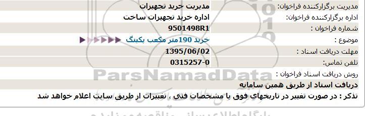 فراخوان خرید 190 مترمکعب پکینگ از کلیه افراد متخصص و شرکتها واجد شرایط دعوت به عمل میآید در مناقصه با کد خبرگزاری پارس نماد: 708471 شرکت نمایند.