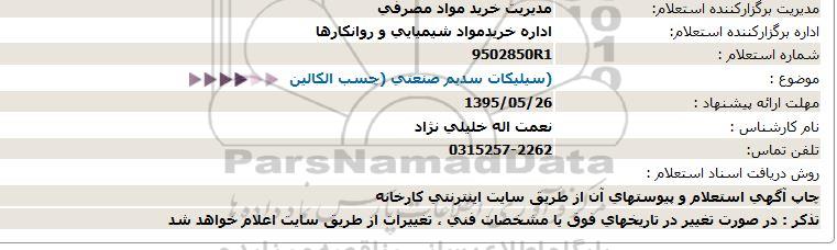 استعلام سیلیكات سدیم صنعتی (چسب الكالین, استعلام سیلیكات سدیم صنعتی (چسب الكالین