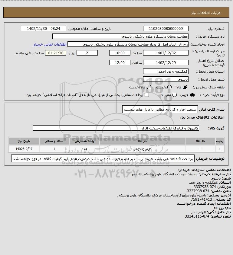نام دستگاه خریدار:معاونت درمان دانشگاه علوم پزشکی یاسوج