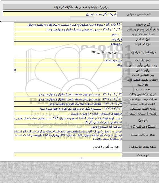 مناقصه, خرید لوله فولادی در اقطار ۲-۴-۸ اینچ وبه متراژ۴۹۸۰ متر مطابق مشخصات فنی و استاندارد شرکت ملی گاز ای, مناقصه, خرید لوله فولادی در اقطار ۲-۴-۸ اینچ وبه متراژ۴۹۸۰ متر مطابق مشخصات فنی و استاندارد شرکت ملی گاز ای