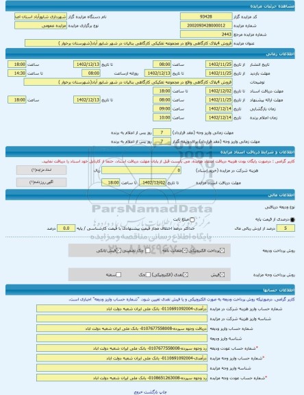 شماره مال2102093428000038نوع برگزاری مزایده مزایده عمومی