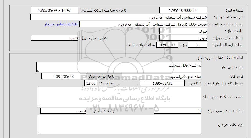 نام دستگاه خریدار : شرکت سهامی آب منطقه ای قزوین