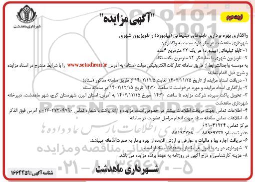 واگذاری بهره برداری تابلوهای تبلیغاتی (بیلبورد) و تلویزیون شهری