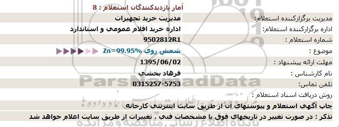 اداره برگزارکننده استعلام: اداره خرید اقلام عمومی و استاندارد